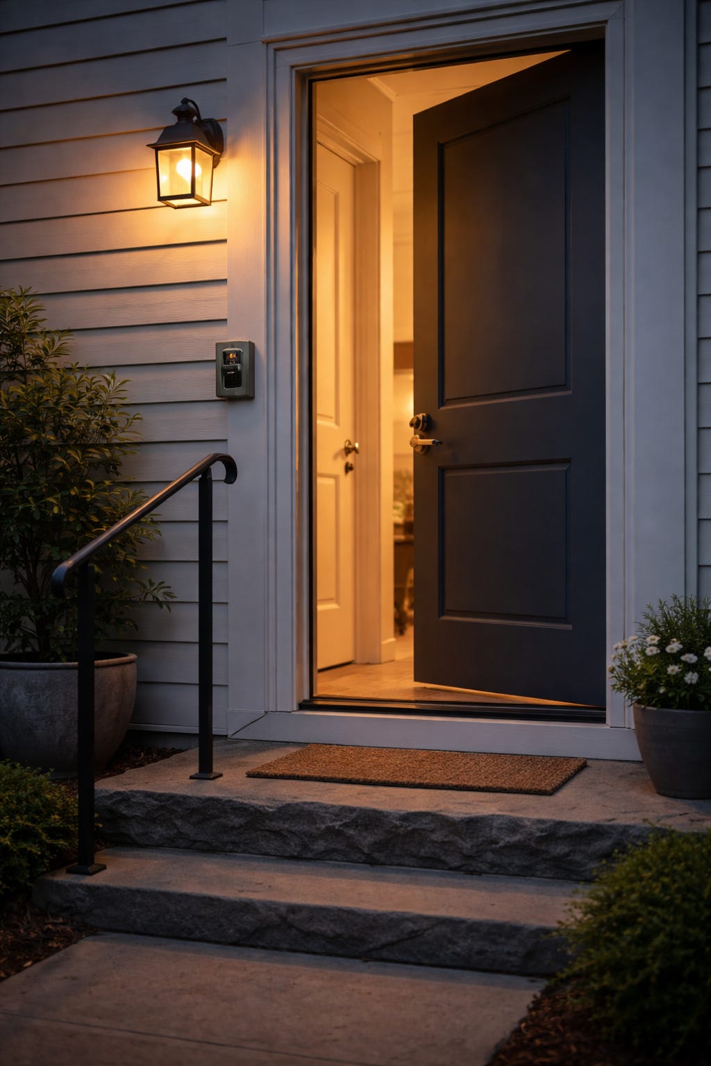 This article covers getting in and out of your home. The front steps, the front door, the threshold, the entry zone just inside. These are moments you move through multiple times every day, often carrying something, sometimes in the dark or the rain, and the environment either helps or it doesn’t.